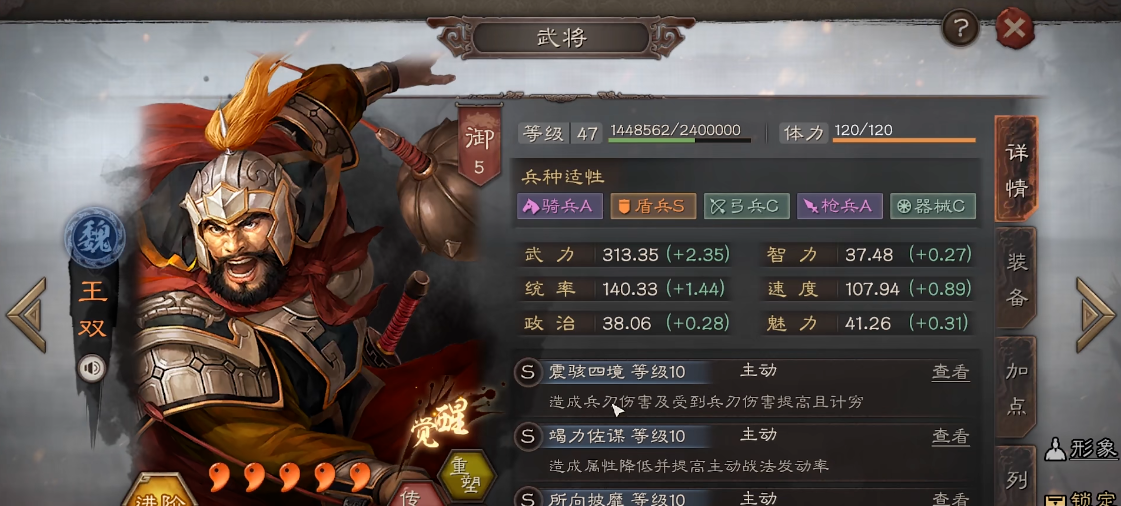 装备与兵种系统为武将提供了重要的外部属性加成。武将在20级后可以穿戴装备,包括武器、防具、坐骑和宝物,这些装备能提供随机的属性增益,高品质装备或带有特技的装备甚至能带来质变。兵种适性则直接影响武将发挥其属性的效率,从S级到C级,适性越高,武将所能发挥的属性百分比也越高,因此尽量为武将搭配适性高的兵种是基本准则。通过升级盾兵营、骑兵营等特定兵种建筑,可以进一步强化对应兵种的属性与特性,从而间接提升部队中该兵种武将的战斗力。
